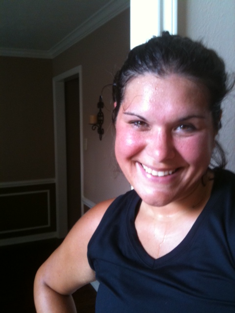 That means it's just ME, my spin bike and some free weights! I spin, jump off and then do 1-minute drills in my grass! Hey, you gotta do what you gotta do to get a great workout!